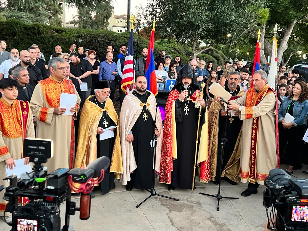 The vigil began at Pasadena’s Memorial Park Armenian Genocide Memorial, a place of immense historical significance for Armenians. The event at this solemn location concluded with a requiem service, in the presence of Pasadena-based Armenian clergy. This service paid tribute to the memory of those who have suffered and perished due to Azeri aggression.